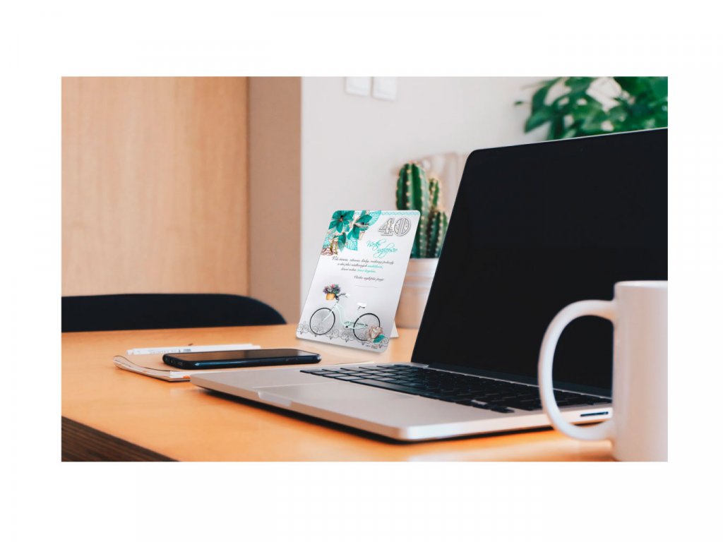 Spracovanie: stojanček, výsek modul číslo, parciálny UV lak, ražba striebornou fóliou, biela obálka, rozmer pozdravu 166x237mm.