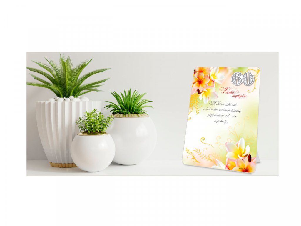 Text na pozdrave: Všetko najlepšie Veľa šťastia, zdravia, lásky, rodinnej pohody a dni plné nádherných maličkostí, ktoré robia život krajším. Všetko najlepšie praje.