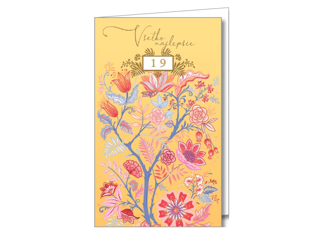Blahoželanie k narodeninám - BC, spracovanie: parciálny Uv lak, perleťový efekt, farebná obálka, rozmer pozdravu 118x167mm.