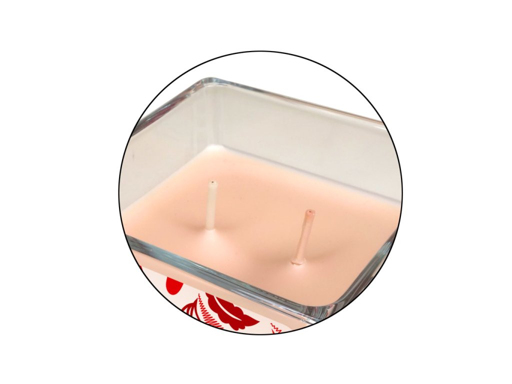 Sviečka je vyrobená z 3 farebného vosku ( 3kolóra ) a 2 knôtmi, zaliata v skle v krásnom obale so špeciálnou ražbou striebornou fóliou. Pri objednaní 12 ks sviečok podľa vášho výberu, dostanete praktický pultový papierový stojanček (krabička).