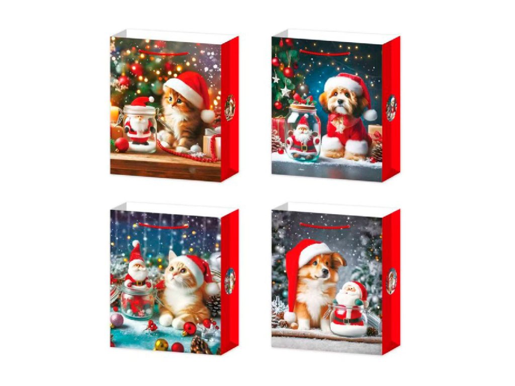 Vianočná darčeková taška Mačička a psík - veľ.M