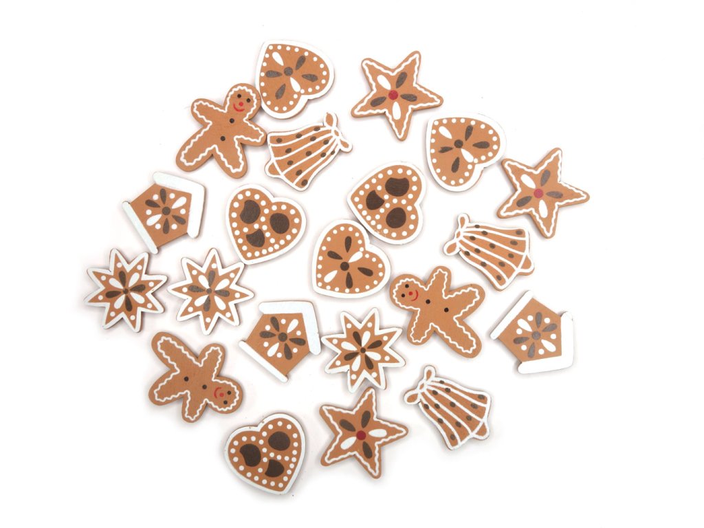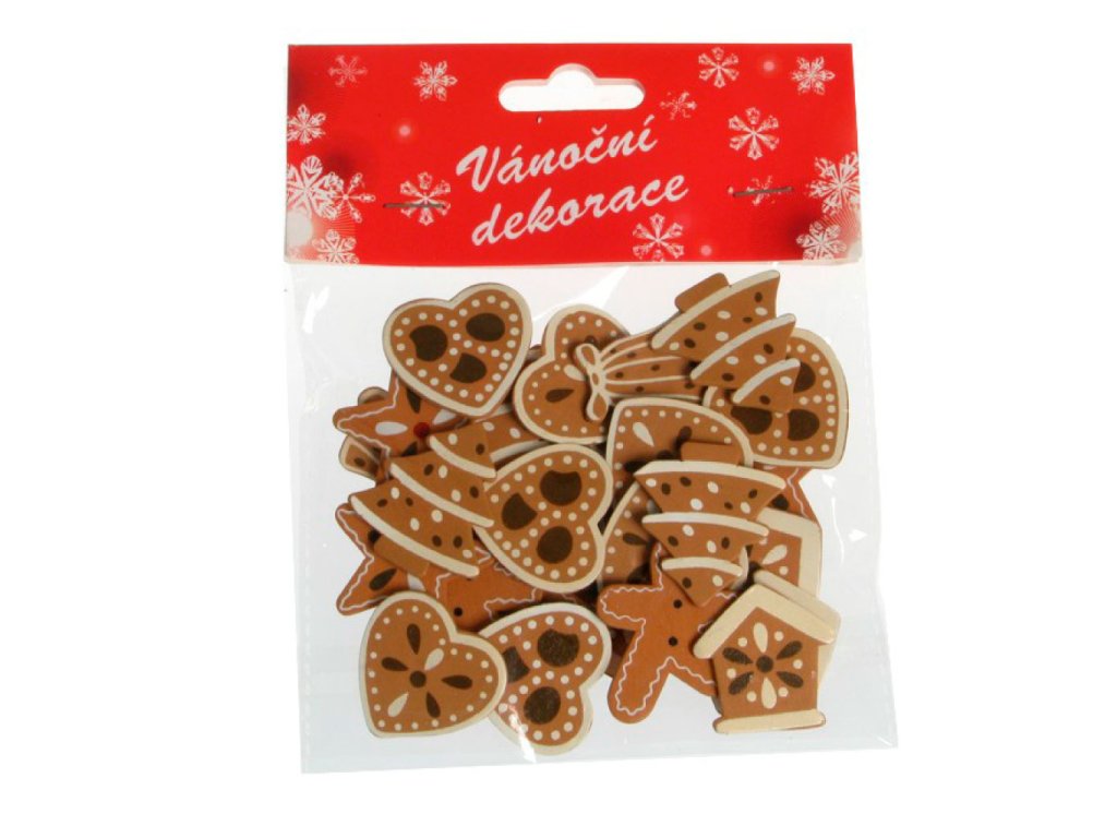 Drevená dekorácia so samolepkou 24ks - perníčky
