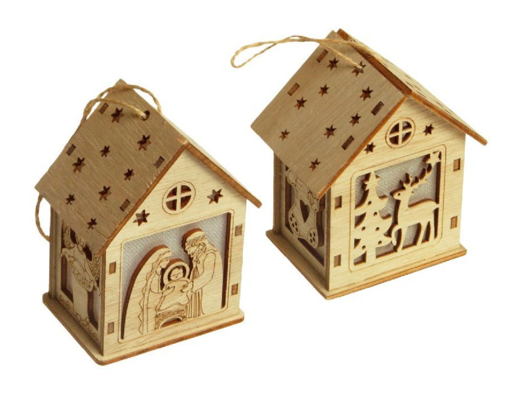 Drevený domček s LED svetlom