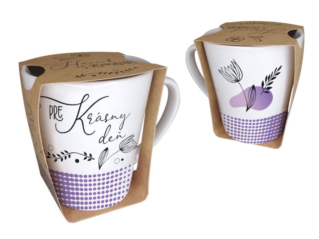 Farebnosť hrnčekov je citlivo zladená k potlačenému textu. Hrnček môžete omývať v umývačke riadu.
