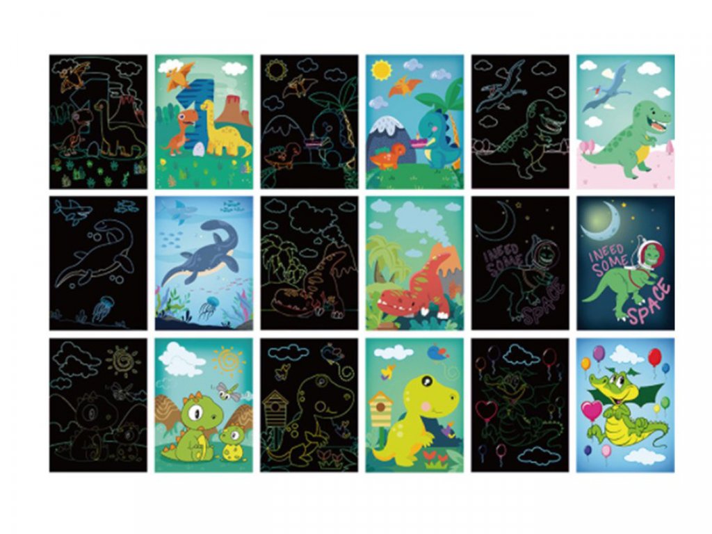 Obrázky škrabacie s vymaľovánkou- Dinosaurus