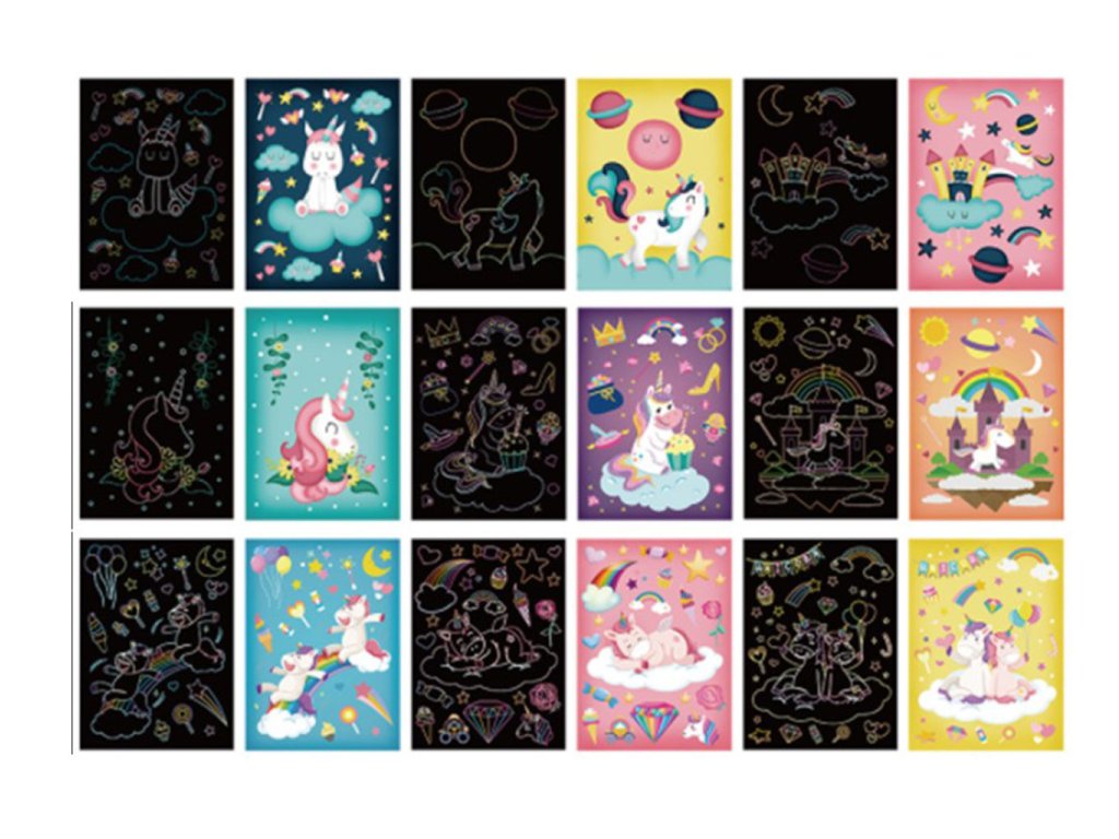 Obrázky škrabacie s vymaľovánkou - Unicorn