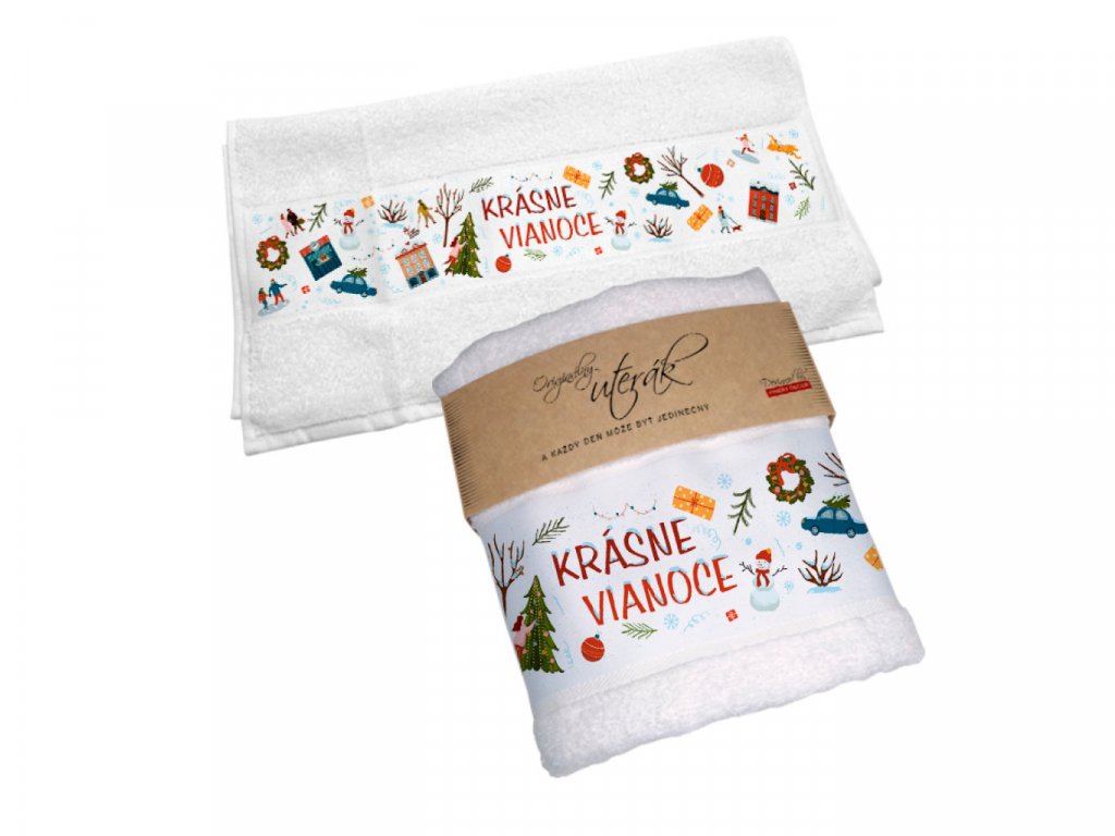 Kvalitný uterák je zo 100% bavlny v bielej farbe s gramážou 400g/m2 o rozmere 50x100 cm. Pestrá a pútavá potlač je v 9 cm širokej PES bordúre. Bordúra je potlačená metódou sublimácie (zalisovaním pri teplote 200°C). Balené v plastovom vrecúšku. Možnosť doobjednania balenia v krabičke. Krabička má rozmer 20x18x4,5 cm. Motív krabičky je rovnaký ako na uteráku.