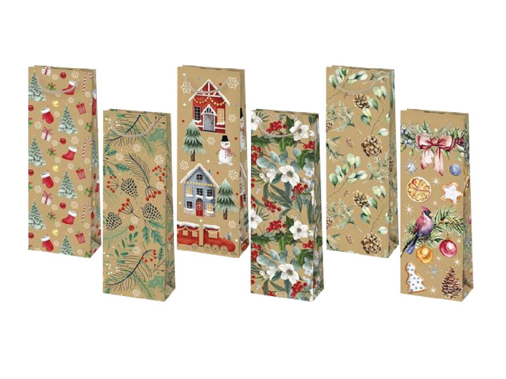 Vianočná darčeková taška na Fľašu - EKO - veľkosť F15K